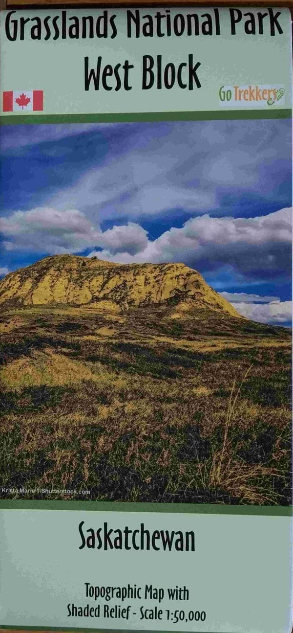 Map of Grasslands National Park West Block, Saskatchewan with a scale of 1:50,000 and shaded relief.